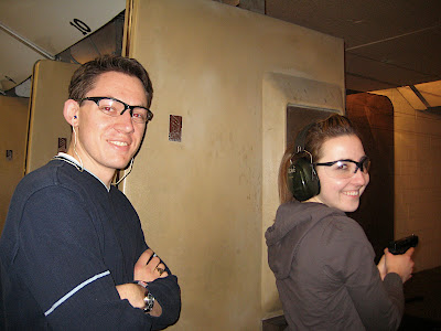 To kill time while we were powerless, we went out to a shooting range with some friends (pretty punny). The boys all taught us how to shoot lots of different guns, and then we had target practice. They impressed us all with their patience and attention to detail in teaching us. Definitely a good thing, with something as powerful as a gun. In that light, I guess they had extra incentive.